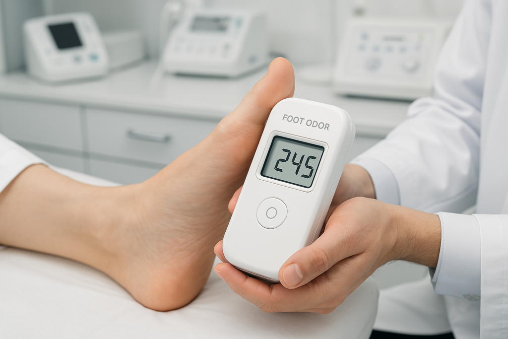 臭気測定器を使用して足に臭いを計測し、臭気の把握をしていただきます。