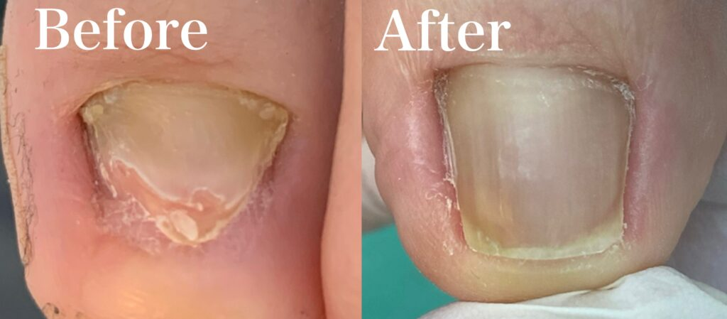 下の写真は巻き爪・変形爪の施術のBeforeAfterです!