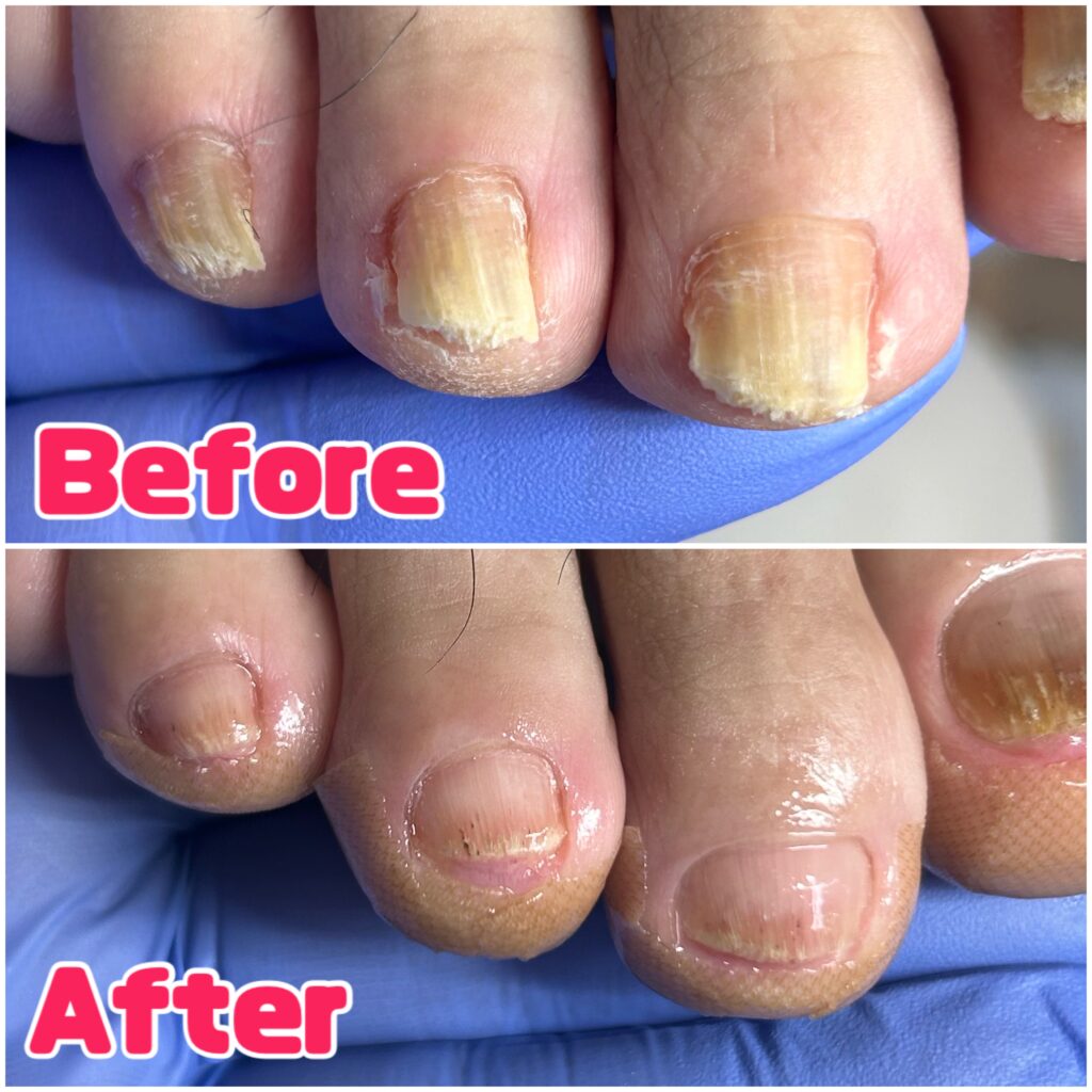 📢【ビフォーアフター】白癬が原因の変形爪が、補正でどんどんキレイに!✨