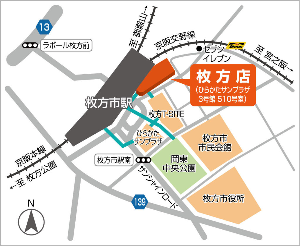 - 住 所〒573-0032大阪府枚方市岡東町12−3 ひらかたサンプラザ3号館 510号室